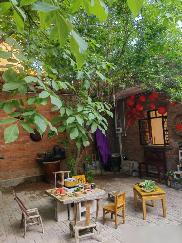 青砖铺地,角落爬满凌霄花,中间摆张旧木桌。